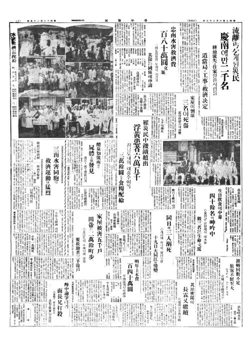 - 罹災民中饑餓續出(이재민중기아속출) 浮黃患者六萬五千(부황환자륙만오천)