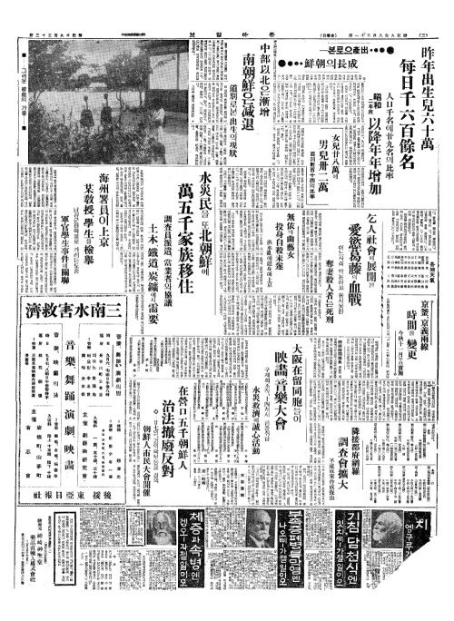 - 罹災民二千八百戶(이재민이천팔백호) 西北朝鮮(서북조선)과滿洲(만주)에