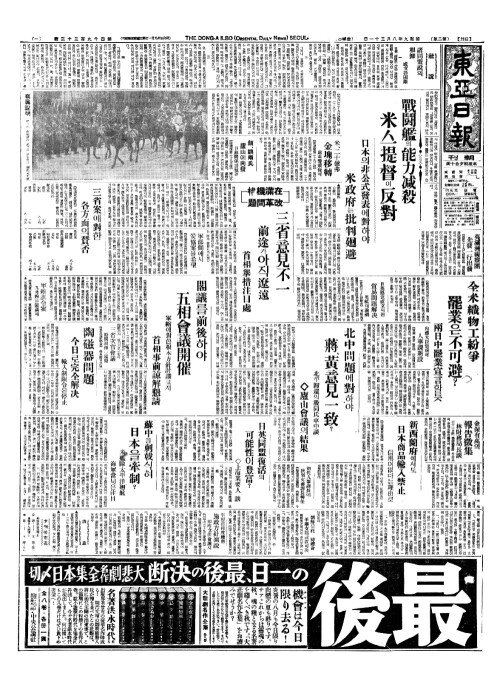 - 米(미)、軍縮代表(군축대표) 데氏九月末出發(씨구월말출발)