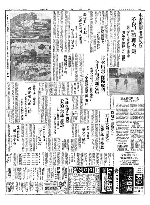 - 本社後援(본사후원)의全朝鮮(전조선) 柔道(유도)、水泳(수영)、籠球(롱구)