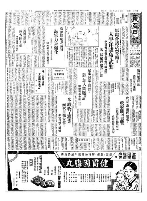 - 軍縮會議决裂(군축회의결렬)에 備(비)코저 太平洋諸島(태평양제도)에 武裝(무장)