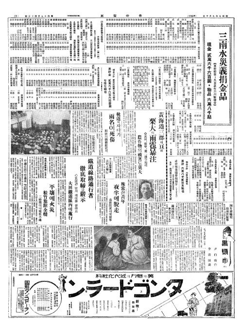 - 羅津(라진)에도 水亂(수란) 浸水(침수) 百九十戶(백구십호)