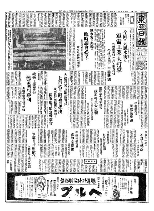 - 今回(금회)의大風水害(대풍수해)로 軍需工業(군수공업)에大打擊(대타격)