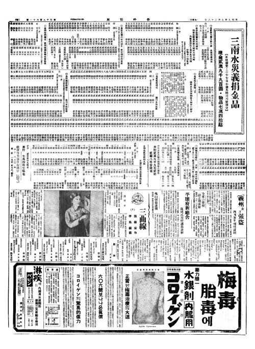 - 災後大阪(재후대판)에惡疾流行(악질류행) 患者四百卅餘名(환자사백삽여명)