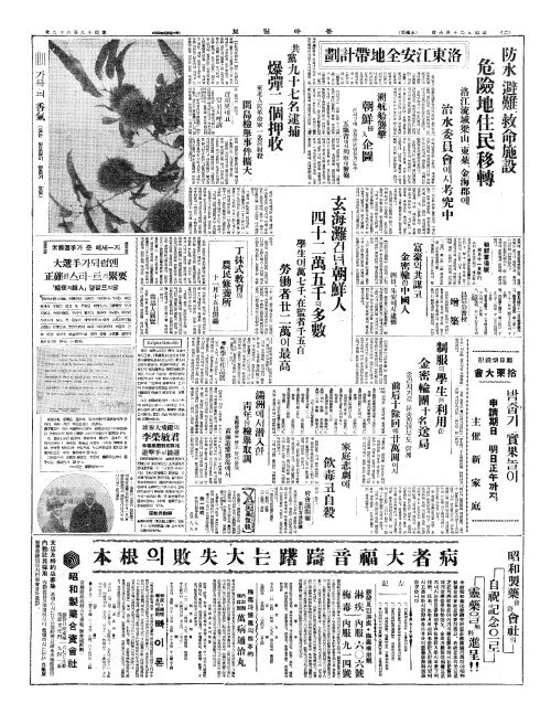 - 間島地方凶作(간도지방흉작) 稻作(도작)은五割减(오할감)