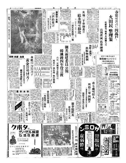 - 春窮(춘궁)에쫄리는四萬戶(사만호) 火田民(화전민) 整理策(정리책)