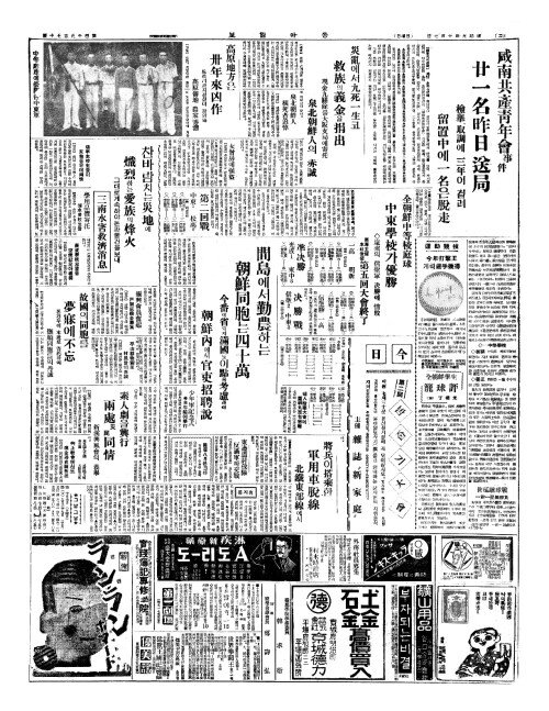 - 咸南共產靑年會事件(함남공산청년회사건) 廿一名昨日(입일명작일)、送局(송국)