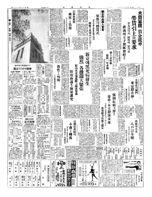- 新京(신경)에黑死病發生(흑사병발생) 俄然(아연) 各機關大緊張(각기관대긴장)