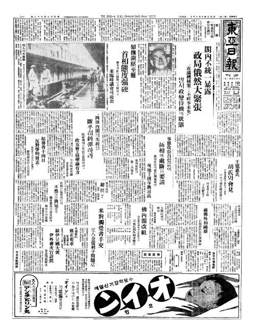 - 閣內不統一暴露(각내부통일폭노) 政局俄然大緊張(정국아연대긴장)