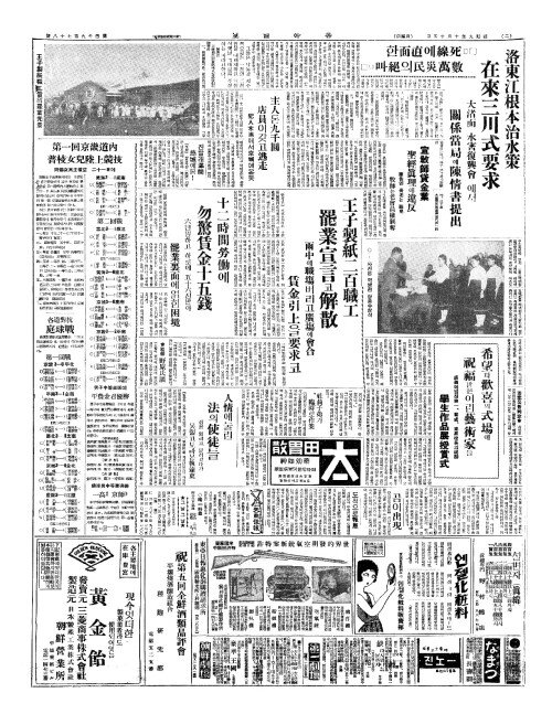 - 王子製紙二百職工(왕자제지이백직공) 罷業宣言(파업선언)코解散(해산)