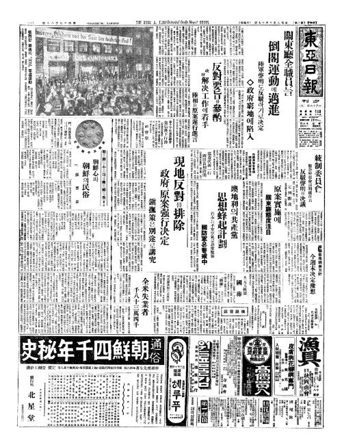- 關東廳全職員(관동청전직원)들 倒閣運動(도각운동)에邁進(매진)