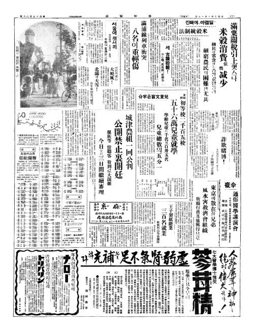 - 滿粟關稅引上(만속관세인상)햇스나 米糓消費依然减少(미곡소비의연감소)
