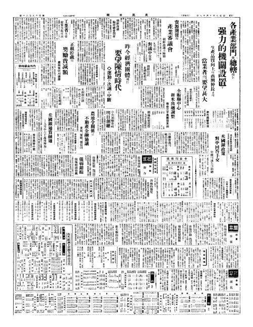 - 各產業部門(각산업부문)을總轄(총할)하는 强力的機關設置(강력적기관설치)?