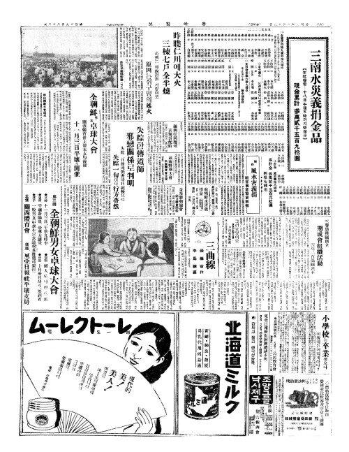 - 三南水災民(삼남수재민)에게 一日賃金同情(일일임김동정)