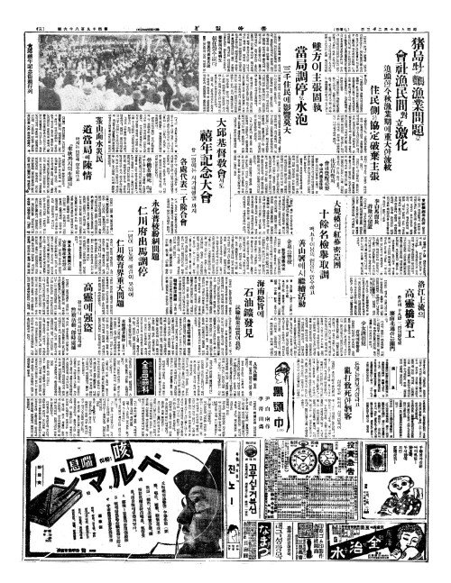 - 朝鮮滿洲魚市埸大會(조선만주어시역대회)=廿二(입이)、三兩日開催(삼량일개최)=