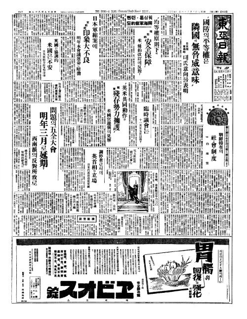 - 日本軍縮案(일본군축안)에 米政府印象大不良(미정부인상대부량)