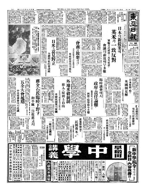 - 蔣介石氏臨時下野(장개석씨임시하야)? 和平統一(화평통일)을促進(촉진)코저