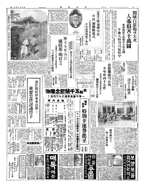 - 開城白蔘塲(개성백삼장)에大火(대화) 人蔘損害十萬圓(인삼손해십만원)