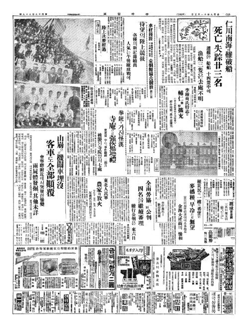 - 仁川南海(인천남해)에難破船(난파선) 死亡(사망)、失踪廿三名(실종입삼명)