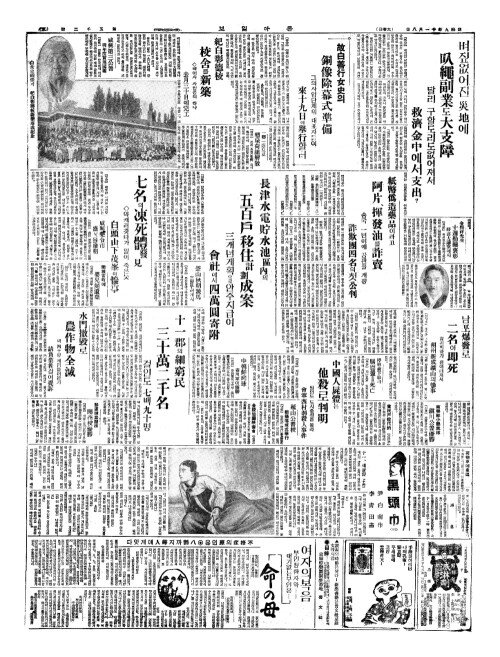 - 全朝鮮(전조선)에死亡者(사망자) 每日一千百餘名(매일일천백여명)