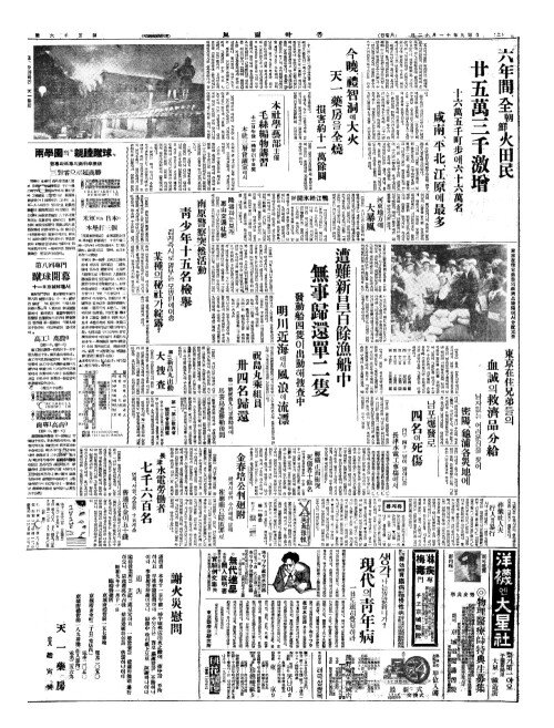 - 六年間(륙연간)、全朝鮮火田民(전조선화전민) 廿五萬三千激增(입오만삼천격증)