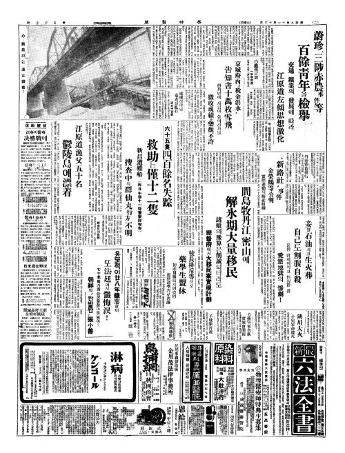 - 六十五隻四百餘名失踪(륙십오척사백여명실종) 救助(구조)는僅十二隻(근십이척)