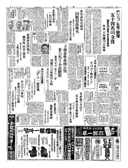 - 密航船顚覆事件(밀항선전복사건) 本報號外發行(본보호외발행)