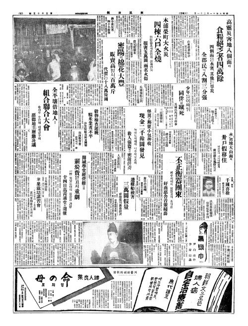 - 高靈災害地八個面(고영재해지팔개면)에 食糧絕乏者四萬餘(식량절핍자사만여)