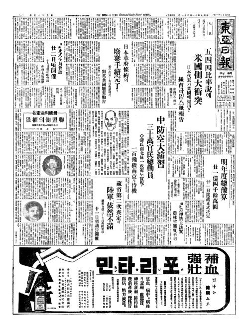 - 中(중)、防空大演習(방공대연습) 三十萬官民總動員(삼십만관민총동원)