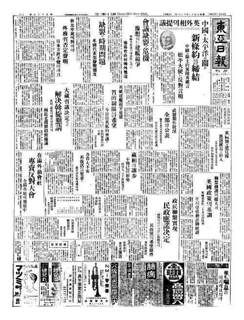 - 英外相(영외상)의提議(제의) 中國(중국)과 太平洋(태평양)에 關(관)한 新條約(신조약)을 締結(체결)