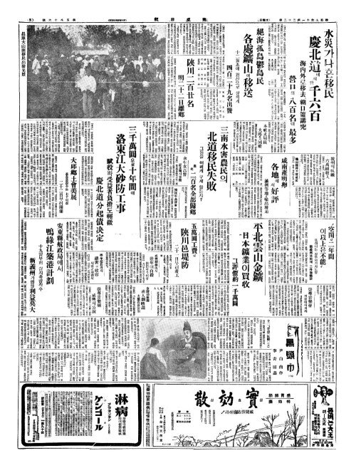 - 水災(수재)가나흔移民(이민) 慶北道(경배도)에서만 千六百(천륙백)