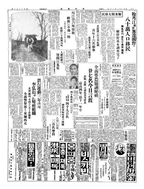 - 全南勞農協議秘社(전남노농협의비사) 廿七名今日言渡(입칠명금일언도)
