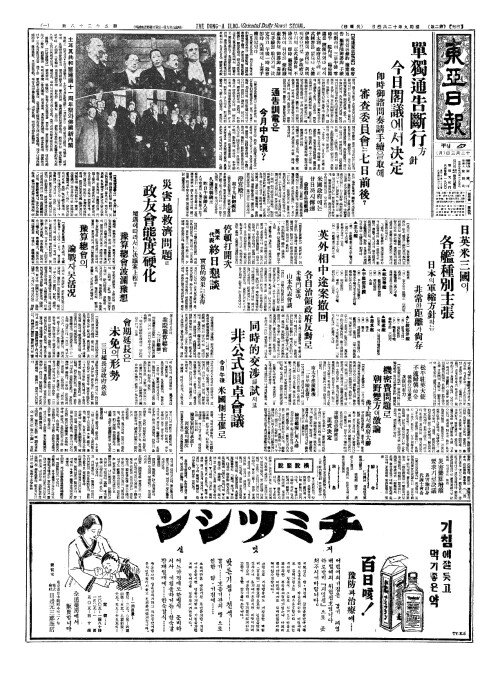 - 單獨通吿斷行(단독통고단행) 方針(방침) 今日閣議(금일각의)에서决定(결정) 卽時御諮問奏請手續(즉시어자문주청수속)을取(취)해 審查委員會(심사위원회)는七日前後(칠일전후)?
