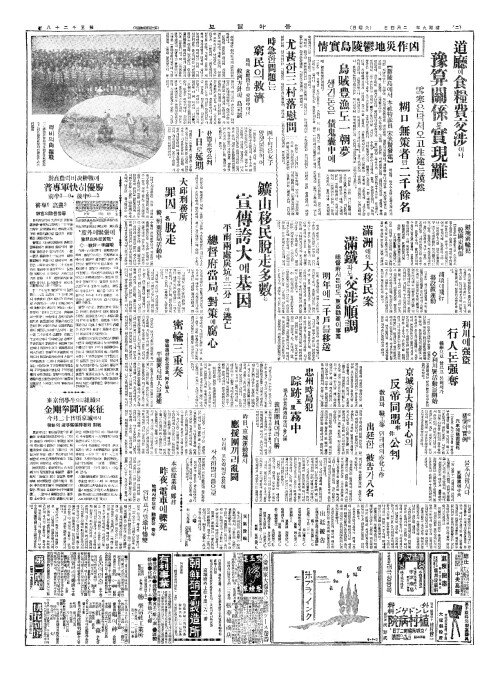 - 滿洲(만주)에의 大移民案滿鐵(대이민안만철)과도 交涉順調(교섭순조)