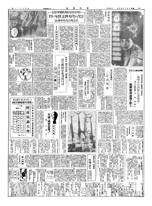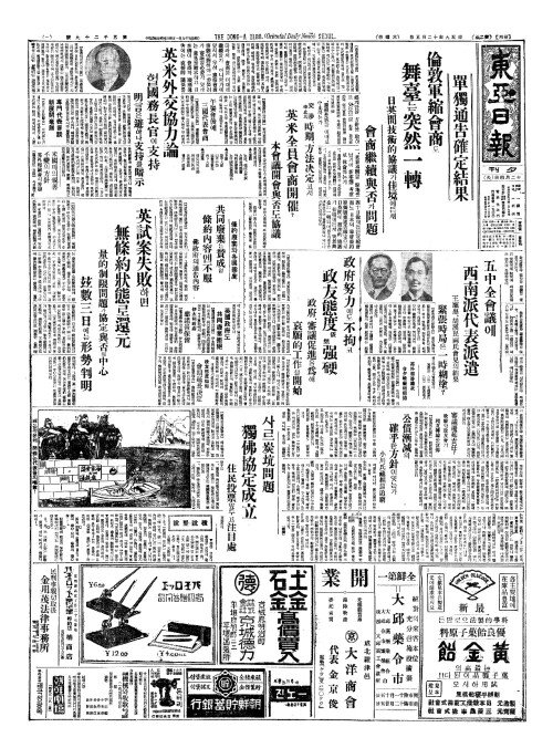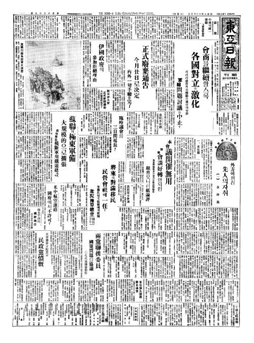 - 單獨通吿確定結果(단독통고확정결과) 倫敦軍縮會商(윤단군축회상)도 舞臺(무대)는突然一轉(돌연일전)
