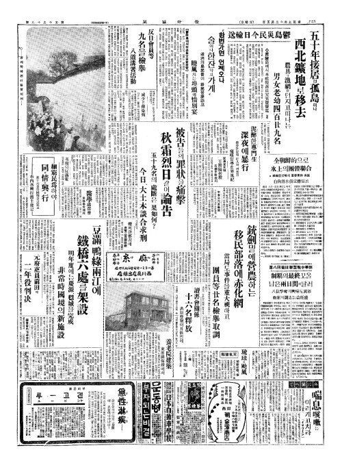 - 鬱島災民今日輸送(울도재민금일수송) 五十年接居(오십년접거)턴孤島(고도)떠나 西北鑛地(서북광지)로移去(이거)