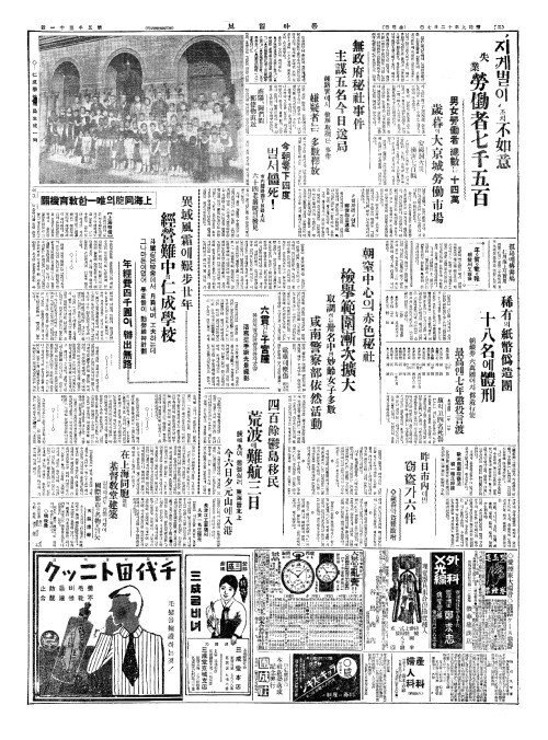 - 朝窒中心(조질중심)의赤色秘社(적색비사) 檢擧範圍漸次擴大(검거범위점차확대)