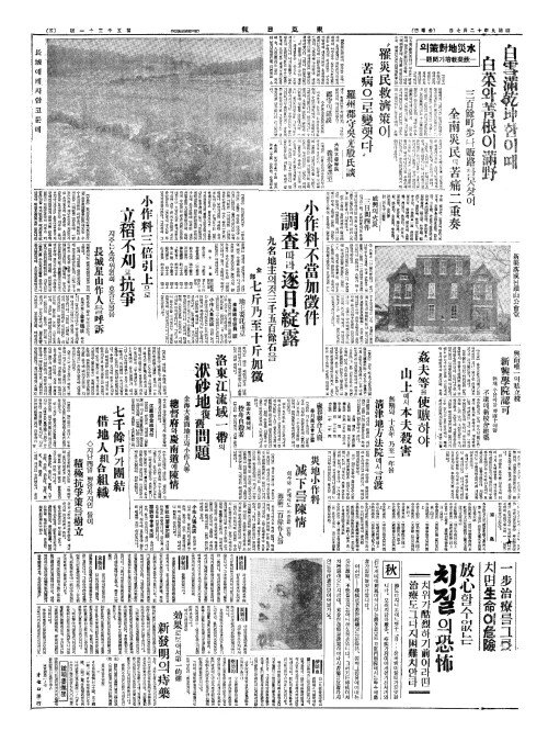 - "罹災民救濟策(이재민구제책)이 苦病(고병)으로變(변)햇다"