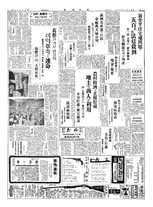 - 新堂里住宅地問題(신당리주택지문제)로 五百住民法廷殺到(오백주민법정살도)
