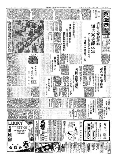- 軍縮會談(군축회담) 全然新事態(전연신사태)에逢着(봉저)