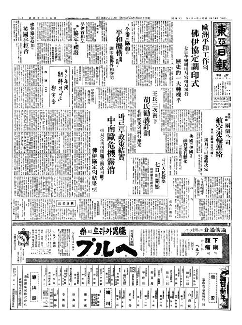 - 歐洲平和工作(구주평화공작)의 佛伊協定調印式(불이협정조인식)