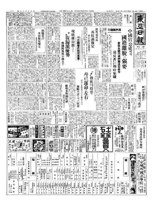 - 今日本紙四面(금일본지사면)