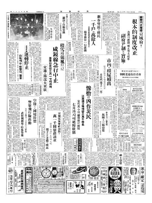 - 咸南各線運轉停止(함남각선운전정지) 山地(산지)에는吹雪(취설)이 襲來(습래)