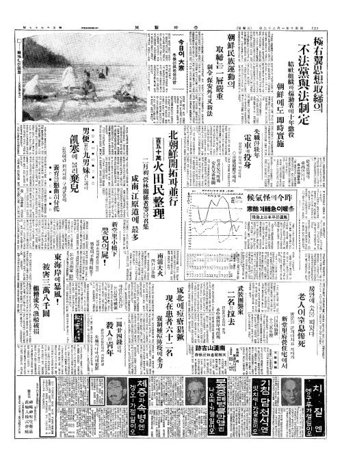 - 咸北(함북)에痘瘡猖獗(두창창궐) 現在患者六十二名(현재환자륙십이명) 强制種痘防疫(강제종두방역)에全力(전력)