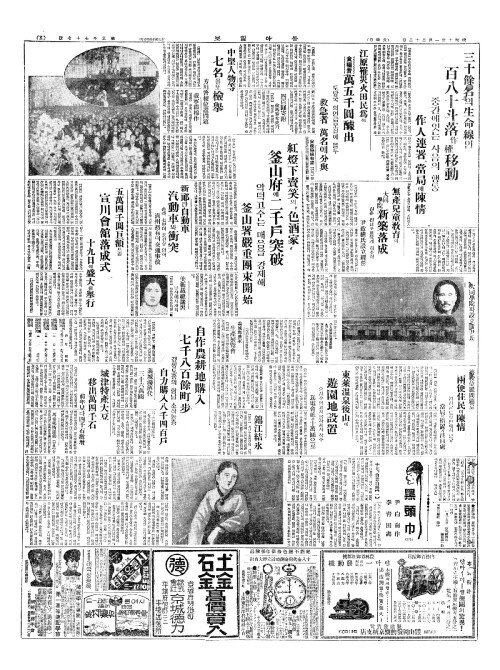 - 平壤市內大火(평양시내대화) 店舖十六戶全燒(점포십륙호전소)