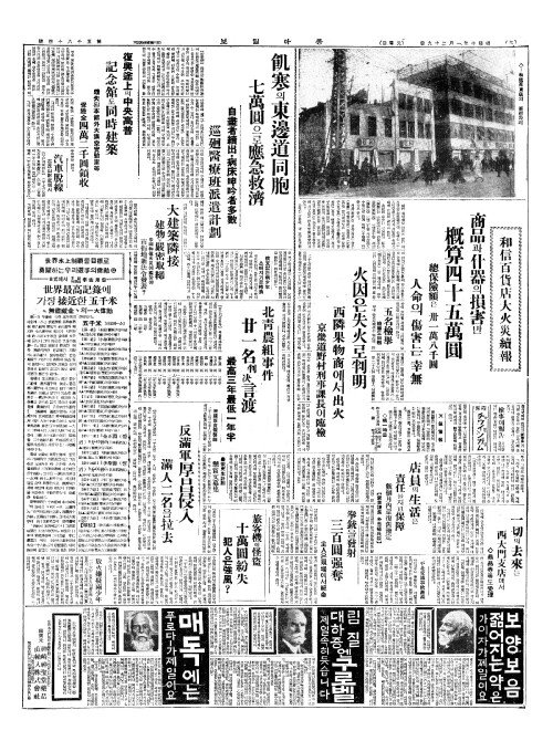 - 高層建物(고층건물)은大激增(대격증) 未備(미비)된京城(경성)의防火陣(방화진)