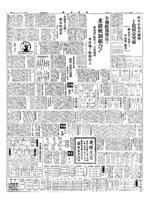 - 全朝鮮郡單位(전조선군단위)로 米糓統制組合設置(미곡통제조합설치)