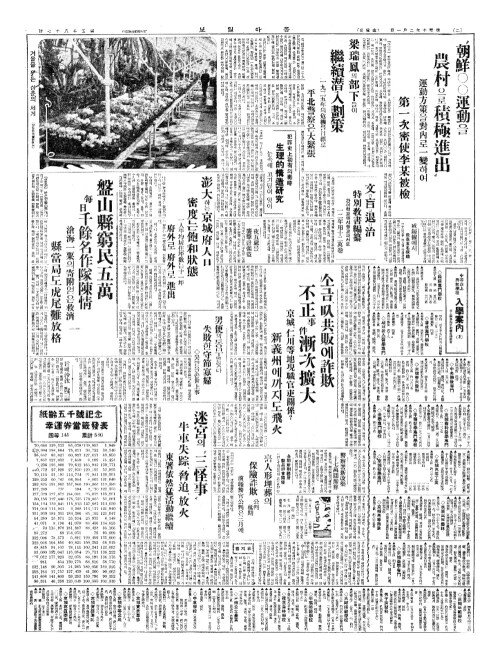 - 災地咸安郡三個面(재지함안군삼개면)에 八千餘名(팔천여명)이生活無路(생활무노)