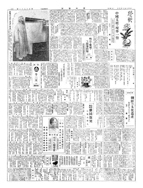 - 中國文壇(중국문단)의現勢一瞥(현세일별) 一年間(일년간)의論壇(논단)、創作界(창작계)、刋行物界等(천행물계등)【一(일)】