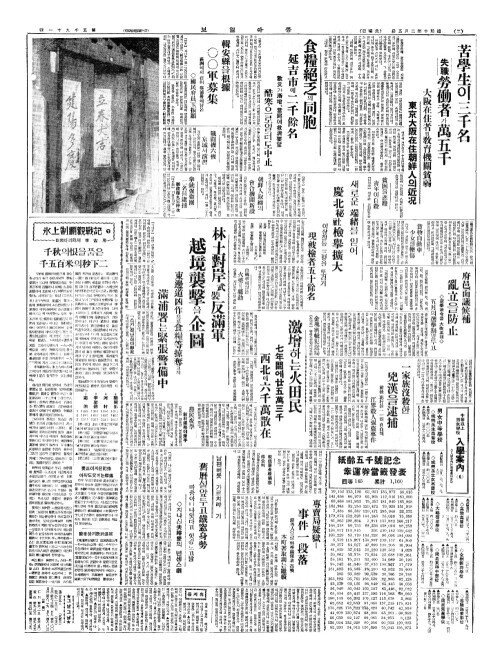 - 食糧絕乏(식량절핍)의同胞(동포) 延吉市(연길시)에二千餘名(이천여명)